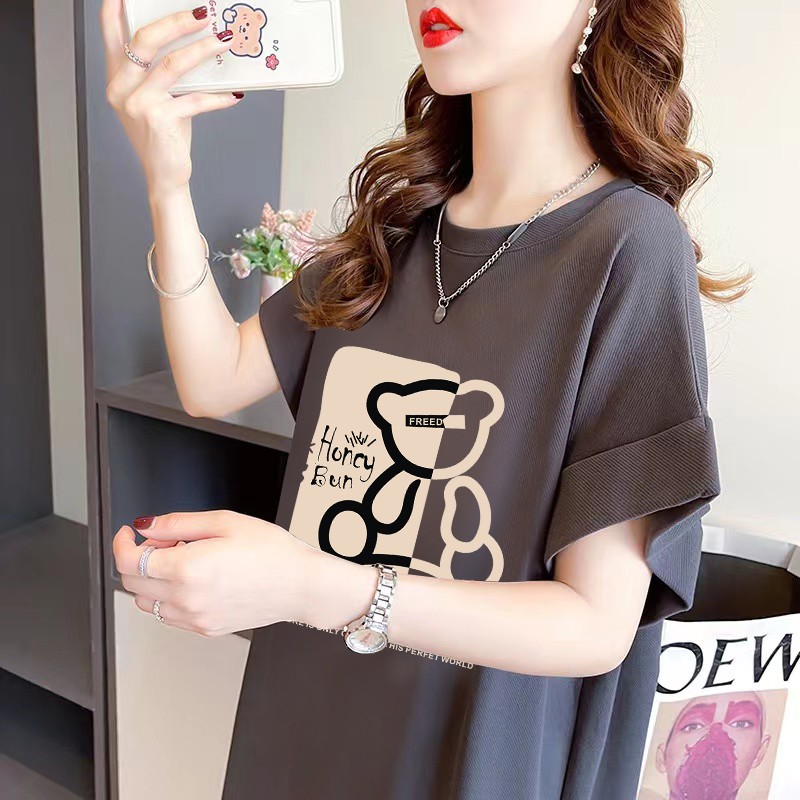 11分鐘前慵懒风短袖t恤裙女夏季休闲宽松过膝长裙纯棉长款连衣裙大码女装 - 灰色套裝